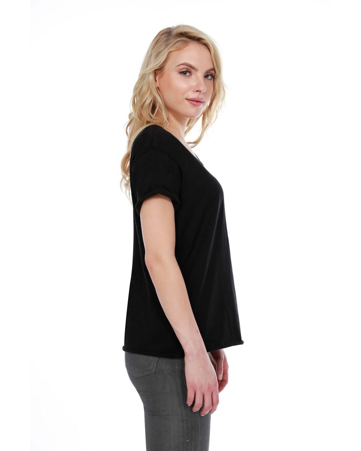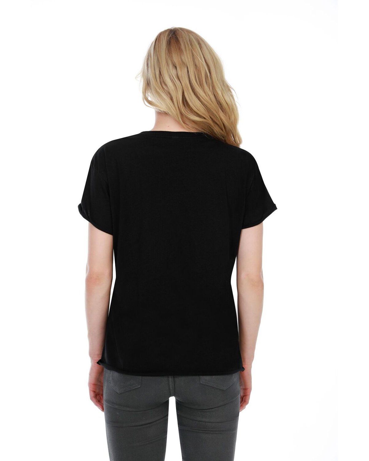 3.5 oz., 100% combed and ring-spun liquid cotton; 40 singles; Optimal stretch and recovery; Fashion fit; Side seams; Raw-edge sleeve and hem; Boxy fit; Music festival style; Tear-away label; Made in a W.R.A.P. certified factory