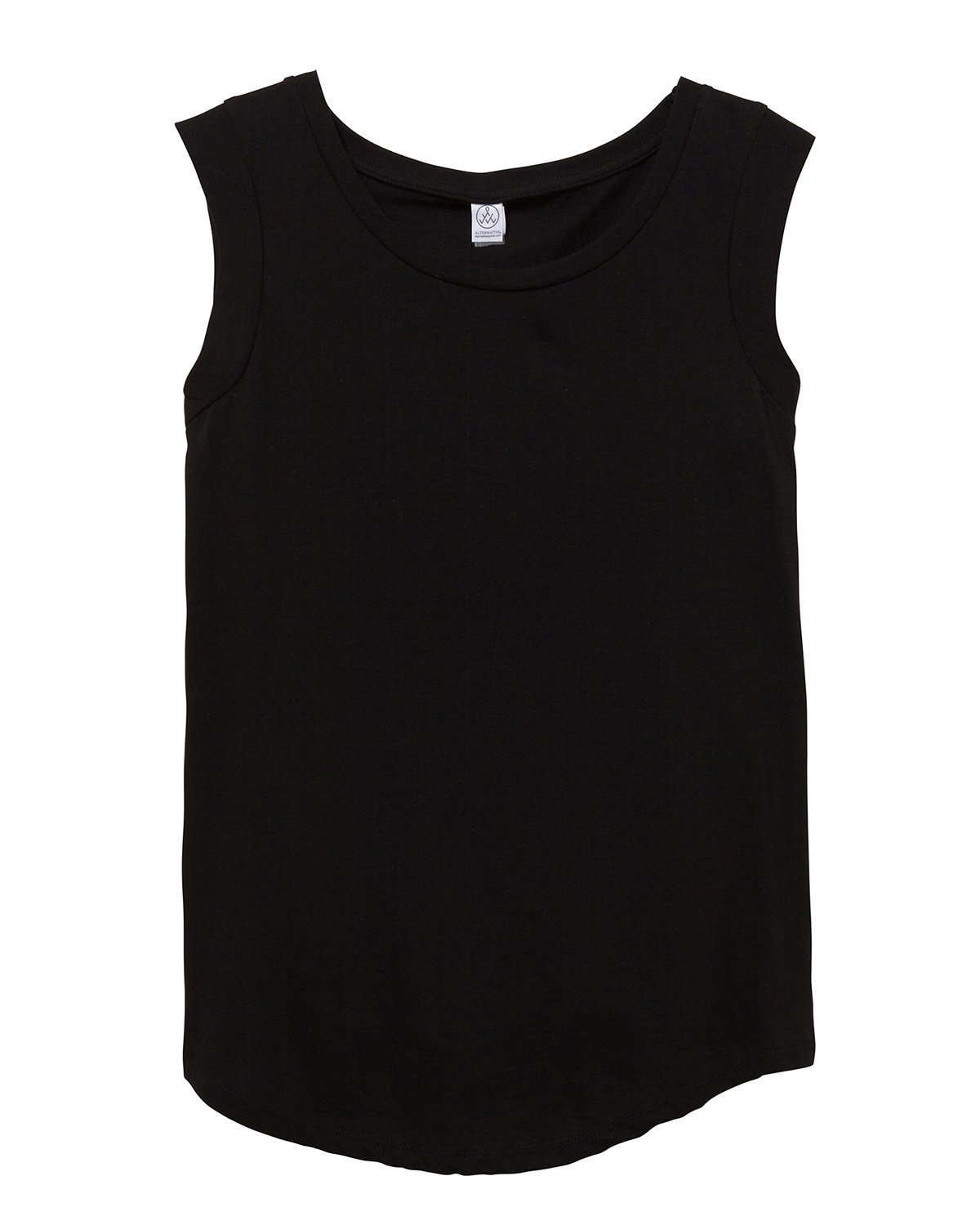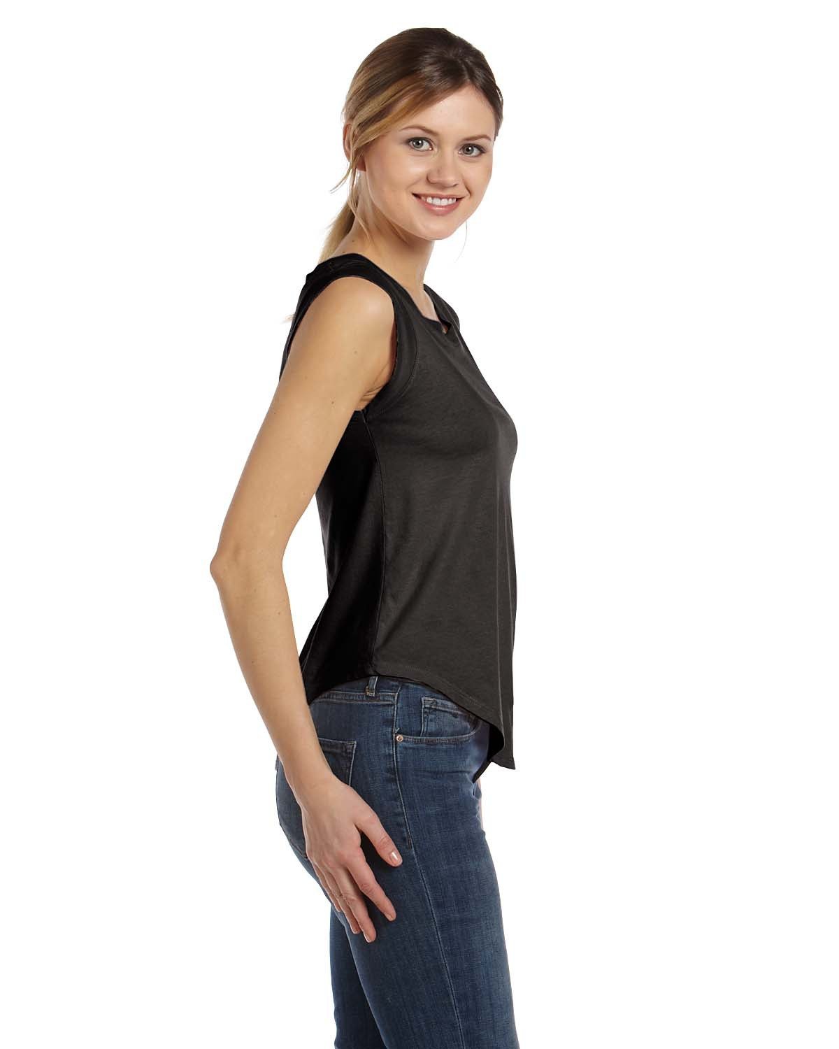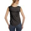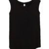 3.5 oz., 100% cotton jersey, 40 singles; Heather Grey is 67% cotton, 33% polyester; Scoop neckline; Subtle cap sleeve detail; Ladies’ slim fit; Colors are piece-dyed and garment-washed for superior softness; Finished with double-needle stitching and a rounded bottom hem