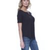3.69 oz., 50% cotton, 50% modal, 30 singles; High-end modal fabric; Tailored v-neck; Curved hem; relaxed fit; Tear-away label; Made in a w.r.a.p. certified factory