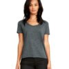 3.5 oz., 40 singles; 65% polyester, 35% combed ring-spun cotton heathers; Note: The Polyester content is transitioning to Recycled Polyester. Mixed inventory may occur.; Fabric laundered for reduced shrinkage; Tear-away label; 1×1 baby rib-knit collar; Hemmed sleeve; Sideseamed; Next Level Apparel has a recycling program for all fabric waste collected from the cutting process. All fabric scraps are sent to a recycling company that cleans and processes them to be used for cushion filling, rugs, etc. To date, 24.3M pounds of fabric have been recycled.