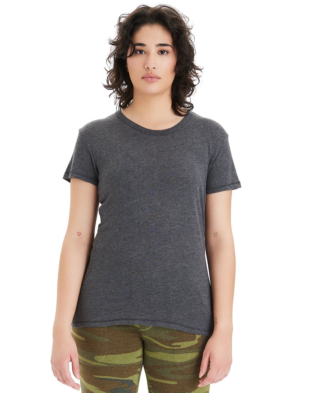 4 oz., 20 singles; 50% cotton, 50% recycled polyester; Self-bound neck; Tonal stitching on inside collar; Blindstitched hems; Tear away label; “A-” list status from CDP (Carbon Disclosure Project); Energy Star Partner of the Year (14 consecutive years); Every piece of Alternative apparel purchased from our company qualifies for Hanes4Education