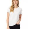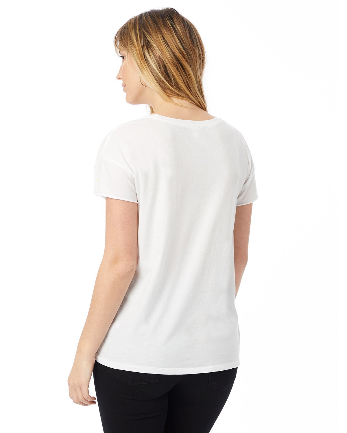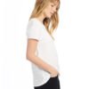 40’s 100% preshrunk cotton; 3.7 oz.; ladies’ relaxed fit; garment-dyed and washed; crewneck; slightly dropped shoulder; unfinished on sleeves and hem; destroyed neck and hemline