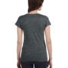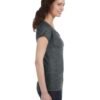 4.5 oz., 100% preshrunk cotton; Sport Grey is 90/10; Dark Heather, Heather (Irish Green & Purple) are 65/35; Deluxe 30 singles Softstyle® yarns; Mitered V-neck; Double-needle stitched sleeves and bottom hem; Sport Grey is 90/10; Dark Heather, Heather (Irish Green & Purple) are 65/35; Feminine ½” rib knit collar; Seamless collar; hemmed sleeves; sideseam construction with stylish tapered cut; Sideseamed; Tear away label; Gildan’s manufacturing process utilizes 45% renewable energy; Gildans Community Investment Program supports education, the environment, humanitarian aid and active living in the communities we do business in