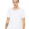 4.2 oz., 100 % combed and ring spun cotton; 32 singles; Raw neck; Retail fit; Side-seamed; Shoulder taping; Tear away label