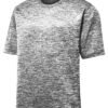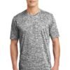 Our color-locking tee has a soft hand wicks moisture resists snags and is energized with an allover heather pattern. 4.1-ounce 100% polyester jersey with PosiCharge technology Removable tag for comfort and relabeling Set-in sleevesIf applying sublimation special care must be taken throughout the process. Contact your decorator for more details.