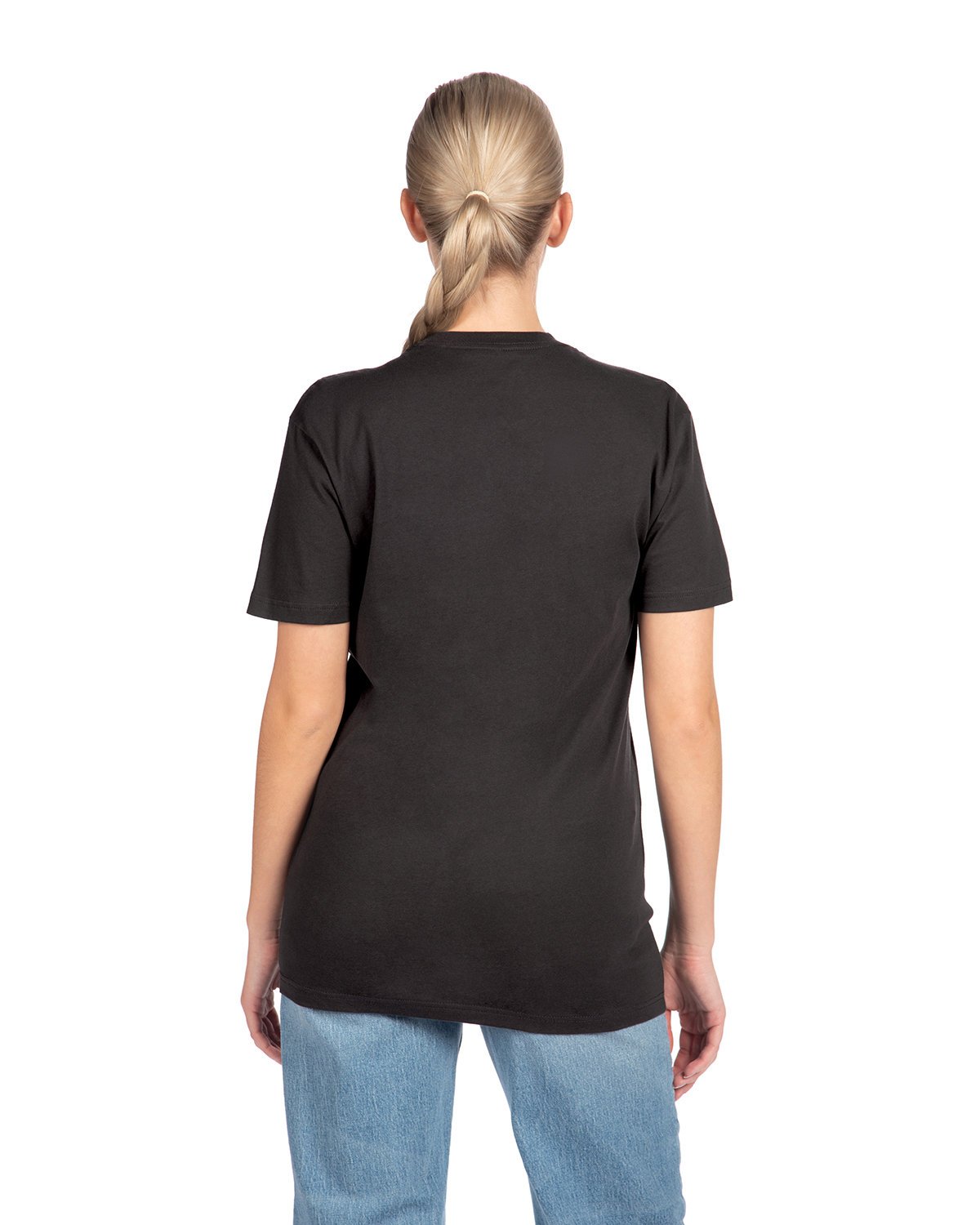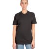 4.3 oz., 100% combed ringspun cotton fine jersey; Heather Gray 90 Cotton/10 Poly; 32 singles; Fabric laundered for reduced shrinkage; 1×1 baby rib-knit set-in collar; Tear-away label; Select colors up to 4xl; Sideseamed; Next Level Apparel has a recycling program for all fabric waste collected from the cutting process. All fabric scraps are sent to a recycling company that cleans and processes them to be used for cushion filling, rugs, etc. To date, 24.3M pounds of fabric have been recycled.