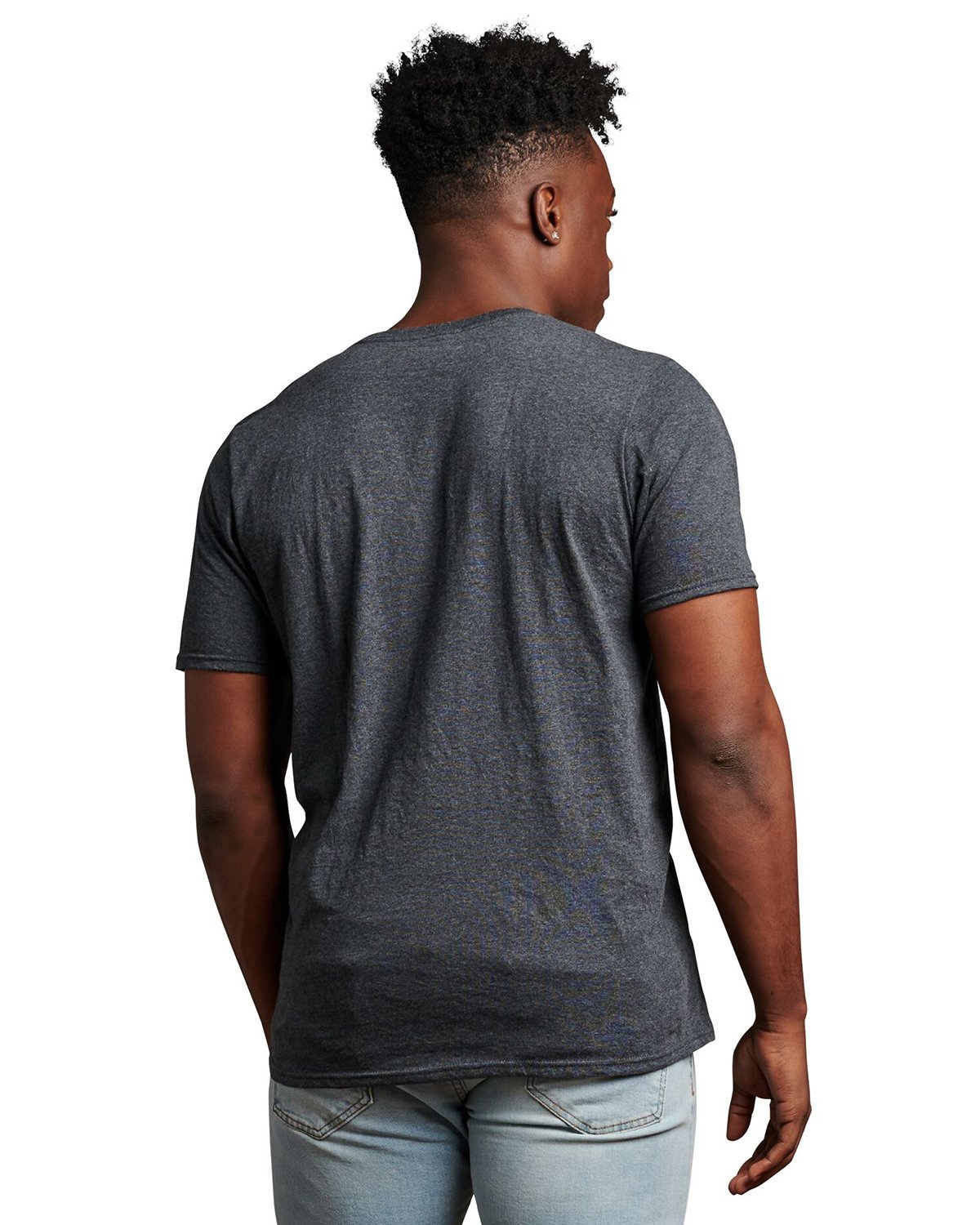 4.7 oz., 60% cotton, 40% polyester jersey; Oxford: 47% cotton, 53% polyester; Ash: 50% cotton, 50% polyester; Dri-Power® moisture-wicking technology; Odor protection keeps fabric fresh; UPF 30+ protection; Oxford back neck tape on all colors; Made with sustainably sourced USA grown cotton; Tagless label; Athletic fit, slightly fitted in chest; Eagle R logo at left hem; Russell Athletic styles are manufactured using sustainable protocols which are measured and reported annually by Fruit of the Loom, Inc.; Russell Athletic styles are manufactured with the commitment to enriching lives for people and communities which is measured and reported annually by Fruit of the Loom, Inc.