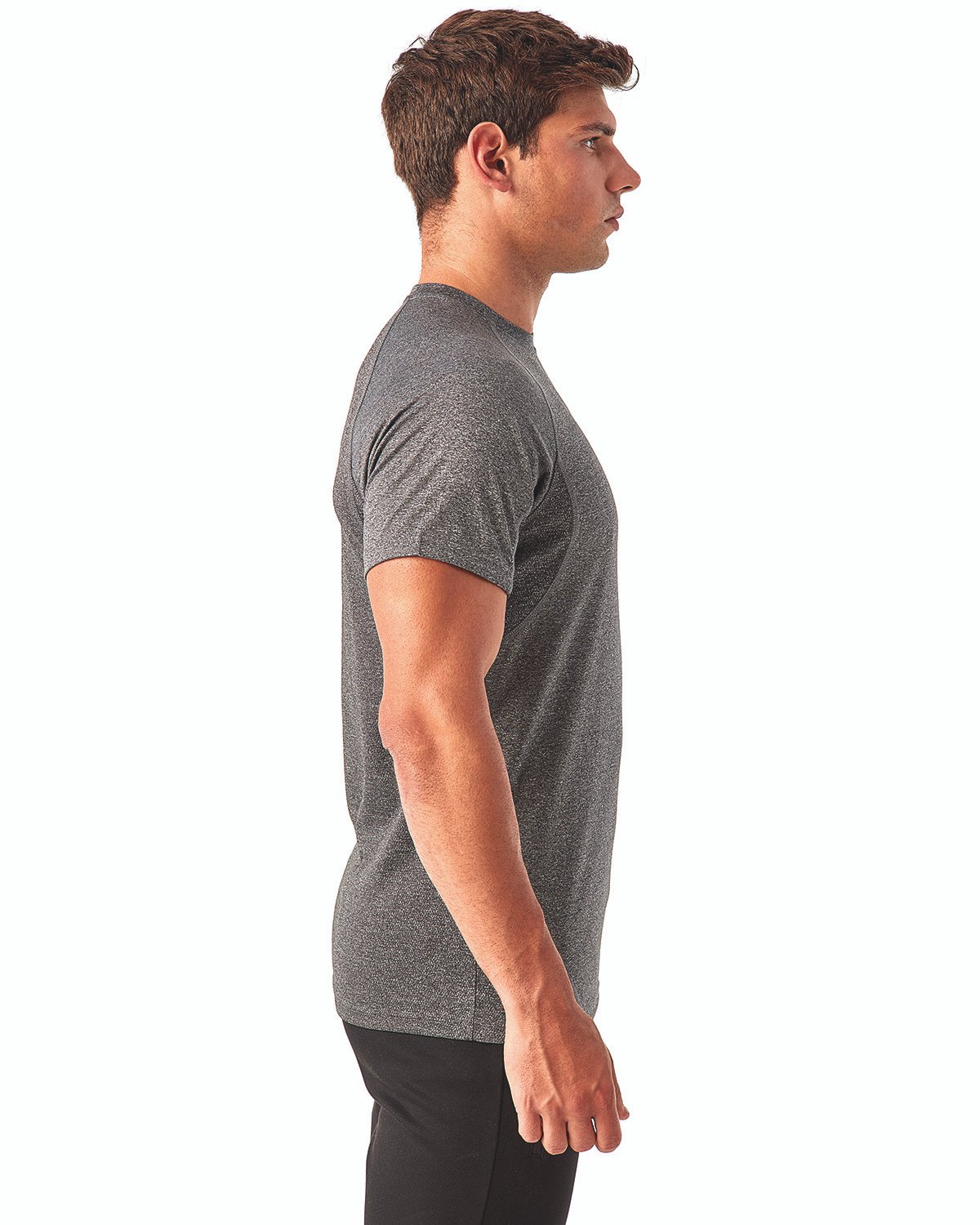 4 oz., 100% recycled polyester; Melange: 83% recycled polyester, 17% polyester; Manufactured using verified recycled polyester yarns; Wicking-fabric technology; UPF 40+ protection; GRS Certified; Crew neck; Mesh panel detailing to back; Stretch fabric; Super lightweight; Smooth knit perfect for print
