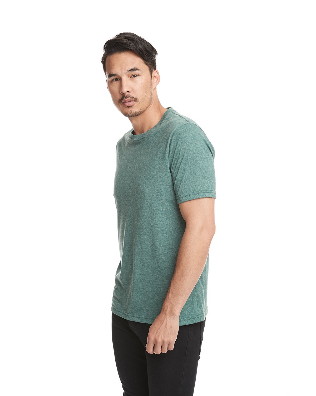 3.5 oz., 40 singles; 65% polyester, 35% combed ringspun cotton jersey; Note: The Polyester content is transitioning to Recycled Polyester. Mixed inventory may occur.; Fabric laundered for reduced shrinkage; Front coverstitched self-fabric set-in colar; Satin label; Sideseamed; Next Level Apparel has a recycling program for all fabric waste collected from the cutting process. All fabric scraps are sent to a recycling company that cleans and processes them to be used for cushion filling, rugs, etc. To date, 24.3M pounds of fabric have been recycled.