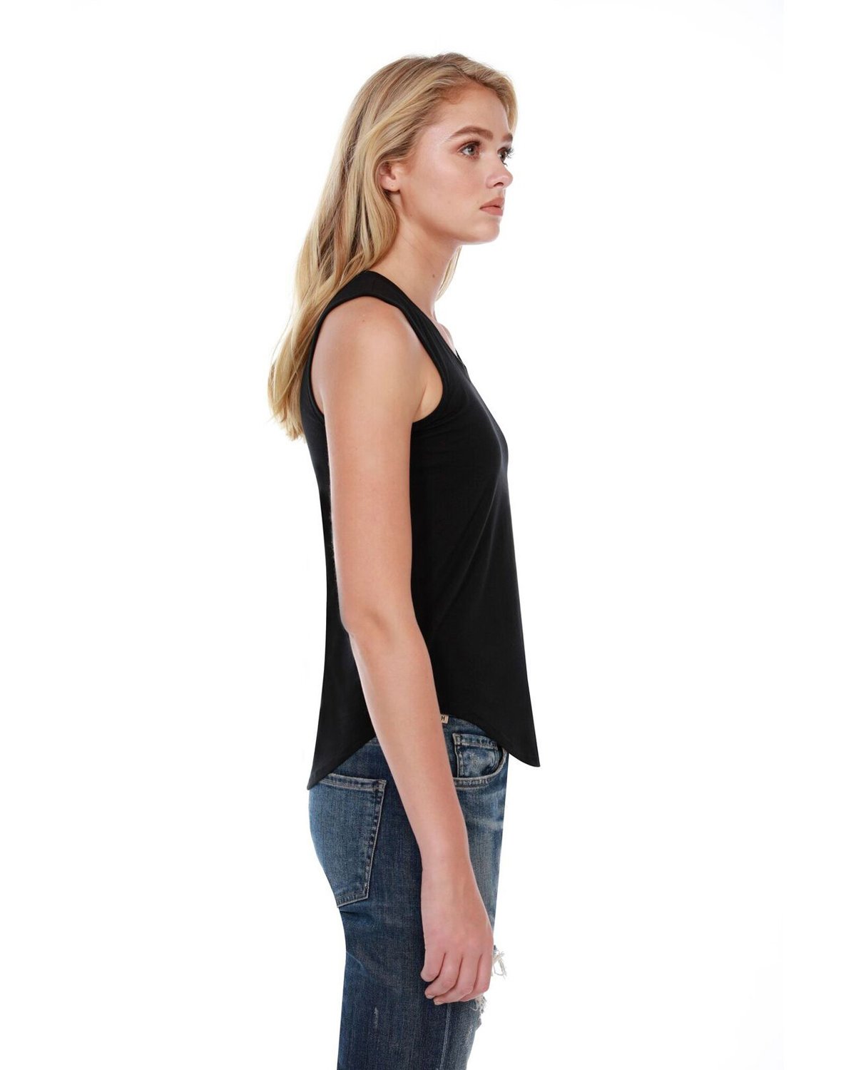 3.5 oz/sq.yd., 100% liquid cotton, 40 singles; Tear-away label; Retail fit; High-low curved bottom hem; Made in a W.R.A.P. certified factory