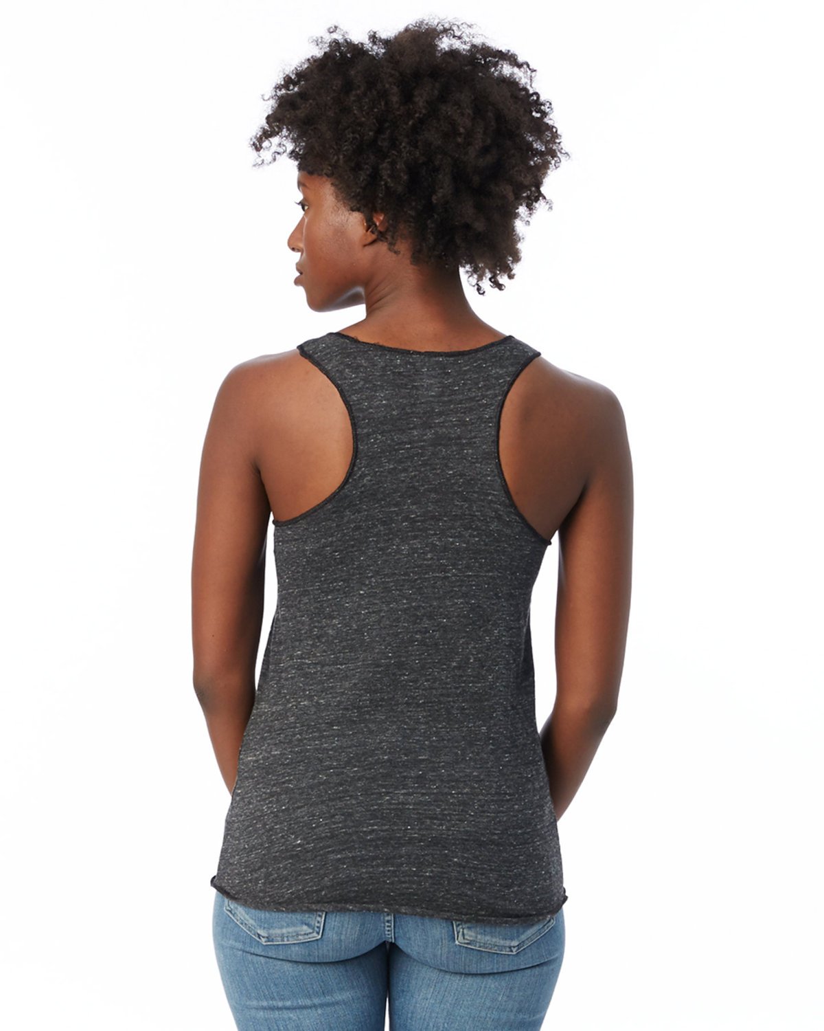 4.1 oz., 20 singles; 50% recycled polyester, 38% cotton, 12% rayon; Racerback detail; Merrowed hem; Rounded bottom; Ladies’ slim fit; A- list status from CDP (Carbon Disclosure Project); Energy Star Partner of the Year (14 consecutive years); Every piece of Alternative apparel purchased from our company qualifies for Hanes4Education