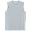 100% performance polyester interlock stain and odor resistant muscle tee; Moisture wicking, odor resistant, stain release; Ultra tight knit resists snagging