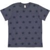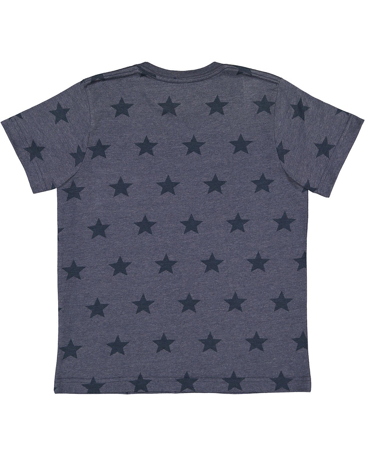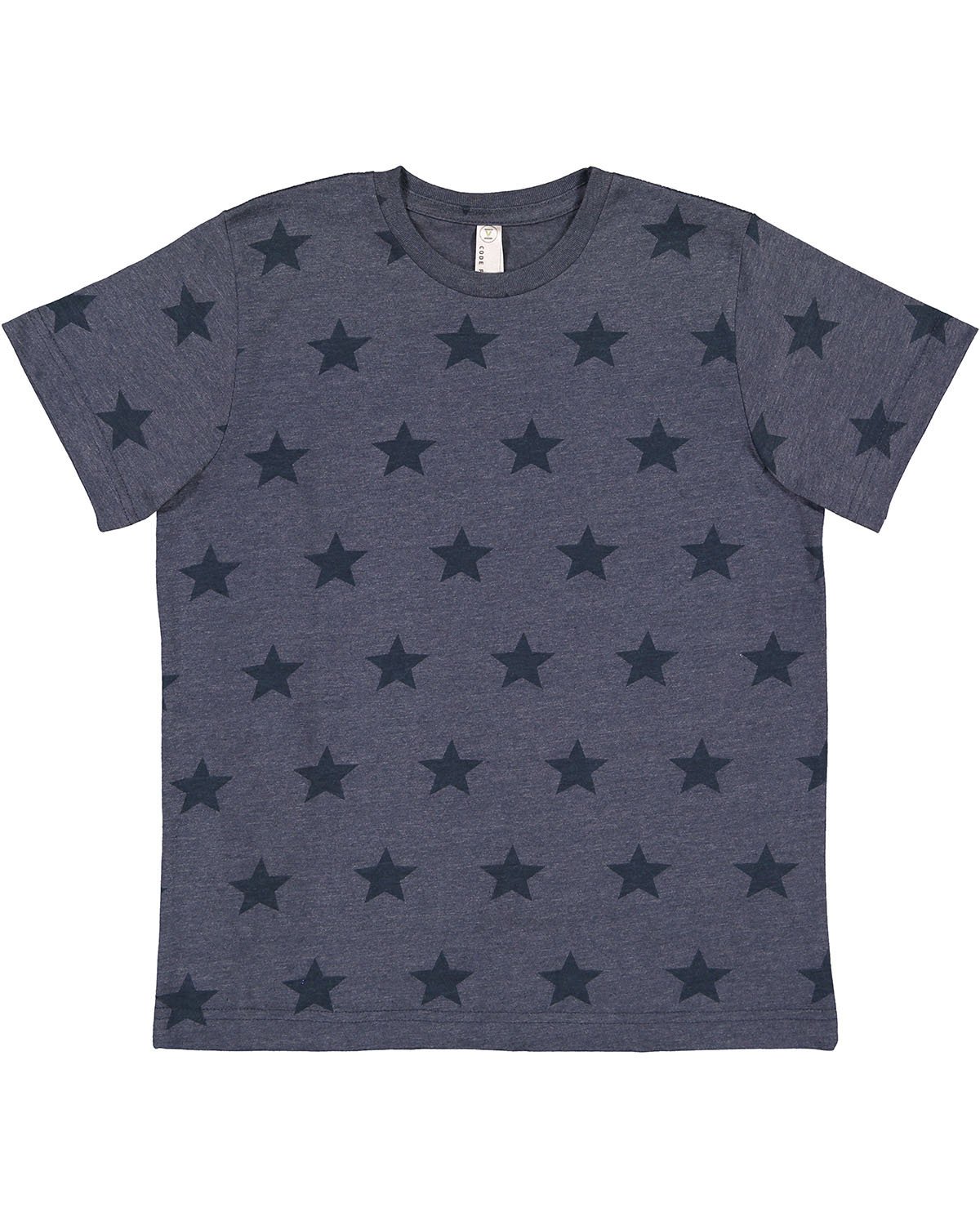 4.5 oz., 60% combed ringspun cotton, 40% polyester vintage fine jersey with printed star pattern; Natural Heather is 100% combed ringspun cotton with star print; Ribbed collar; Self-fabric neck tape; Double needle sleeves and bottom hem; Side seam construction; EasyTear label; CPSIA Compliant tracking label in side seam
