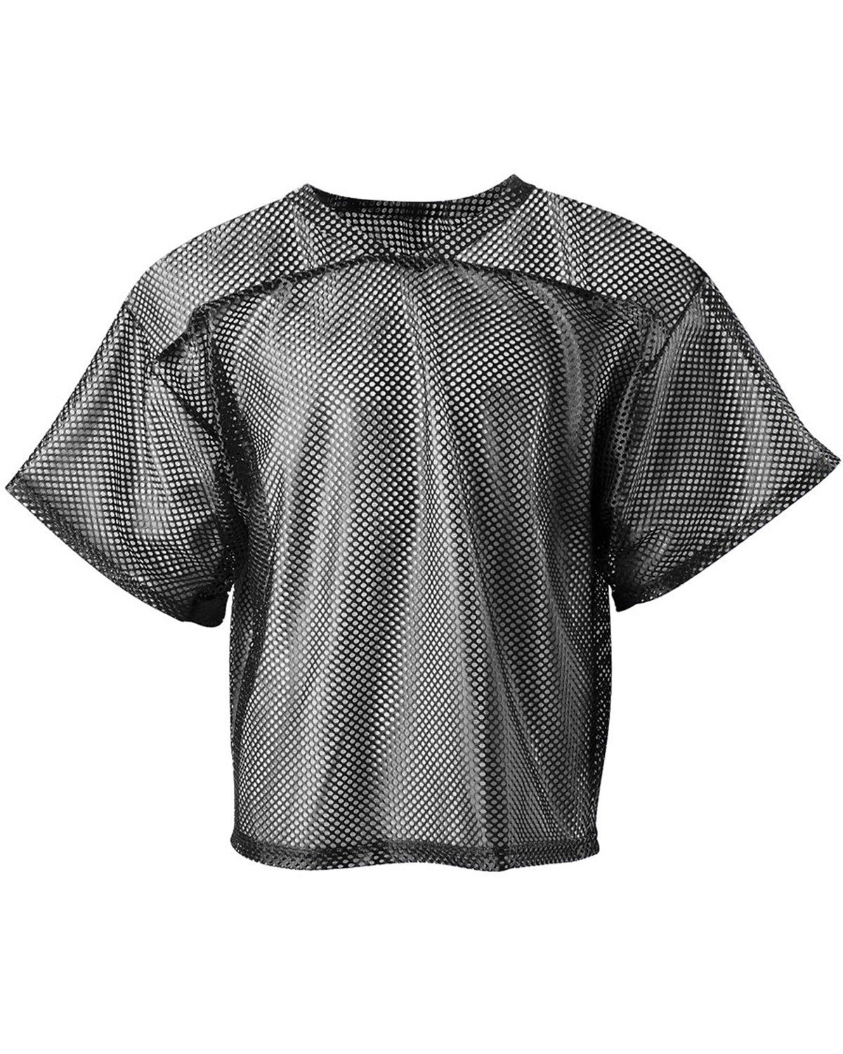 100% polyester mesh, 5.3 oz. per square yard; Contains moisture-wicking, stain release, and is odor resistant; Double layer cowl; V-Neck self-trim; Reinforced coverseam finish
