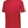 100% polyester smooth knit with true hue technology on front and back panel; Ture hue technology prevents dye migration; 92% polyester/8 spandex wicking pinhole mesh underarms; Wicks moisture; Pad print label; Two-button placket; Contrast color inserts; Raglan sleeves; Longer length