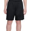 100% polyester, 4 oz. per square yard; Contains moisture wicking, stain release, and is odor resistant; Resists snagging; Ultra tight knit; 1 1/2″ Covered waistband with 6″ inseam; Drawcord located on the inside